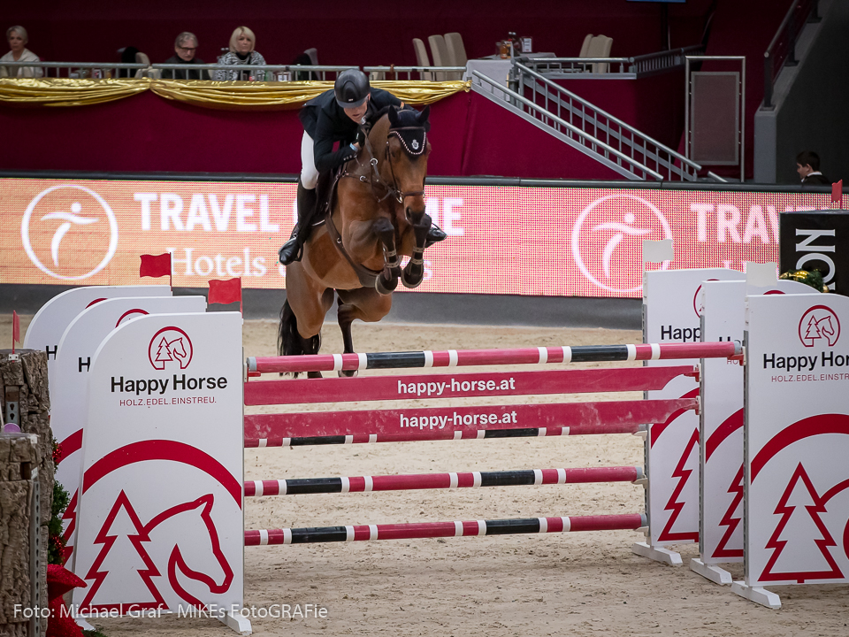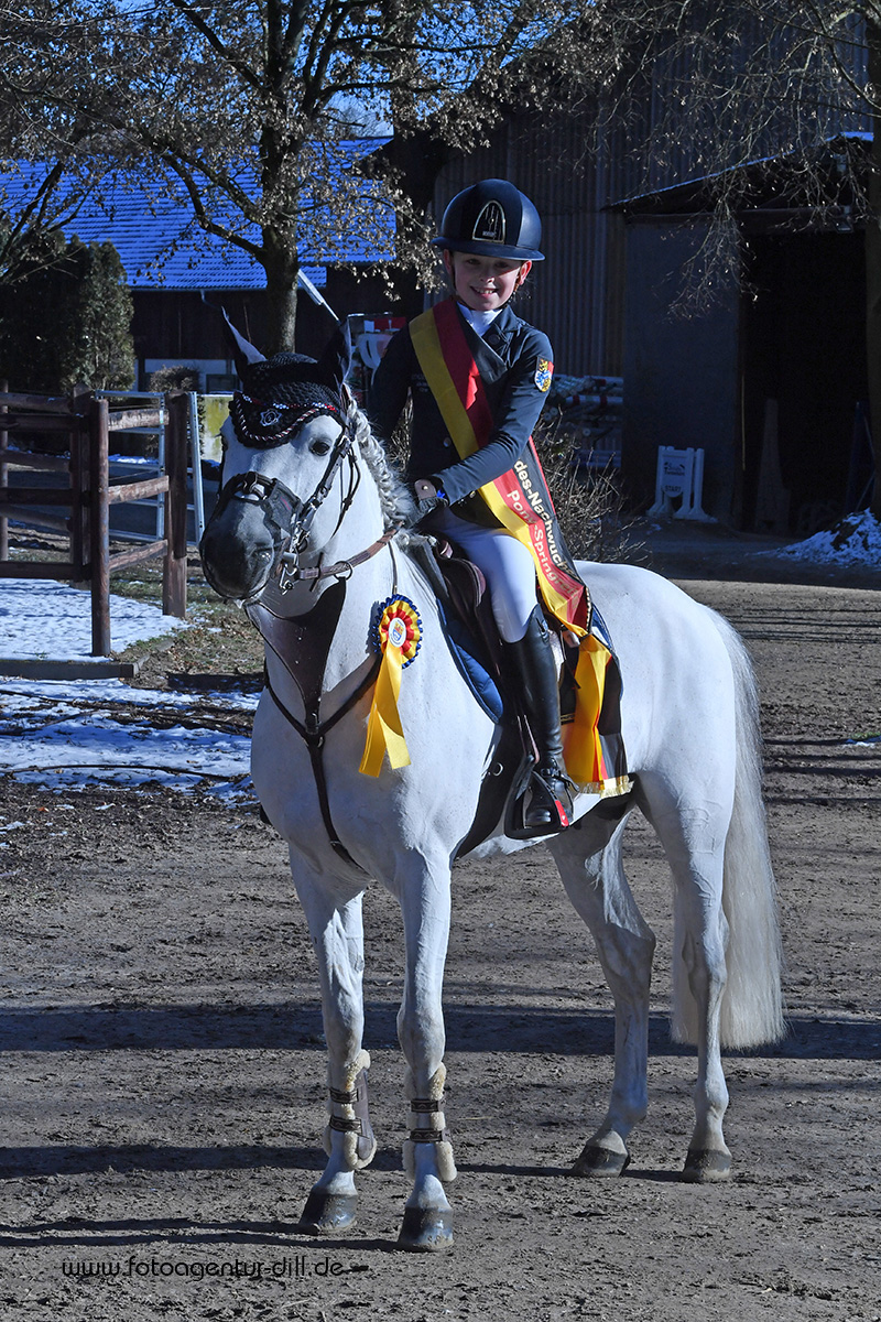 Mit 17,80 Punkten setzte sie sich im Finale vom Bundesnachwuchschampionat der Pony-Springreiter in Darmstadt über 2 Runden gegen Helena Becker und Christoph Columbus durch, die 17,70 Punkte auf ihrem Konto hatten.